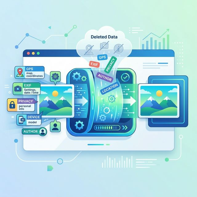 Aprenda como usar um removedor de metadados para limpar dados EXIF ocultos, coordenadas GPS e informações da câmera de suas fotos no iPhone, Mac, Windows e online.